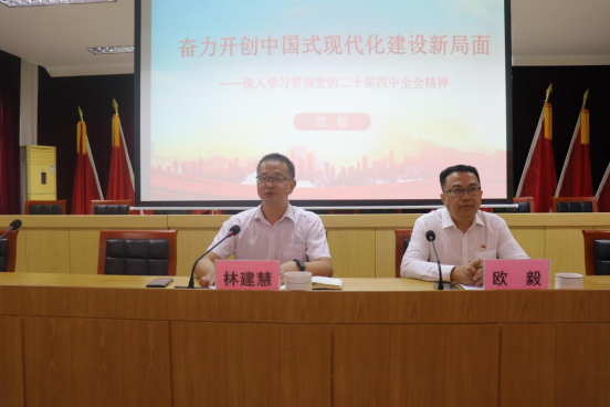 為深刻領(lǐng)會(huì)和準(zhǔn)確把握黨的二十屆四中全會(huì)的重大意義、精神實(shí)質(zhì)和實(shí)踐要求,切實(shí)把廣大黨員干部群眾的思想和行動(dòng)統(tǒng)一到黨中央的決策部署上來(lái),2025年11月10日上午9時(shí),建新鎮(zhèn)在鎮(zhèn)四樓會(huì)議室召開(kāi)黨的二十屆四中全會(huì)精神專題宣講會(huì)。鎮(zhèn)班子成員、鎮(zhèn)全體干部職工、各機(jī)關(guān)單位負(fù)責(zé)人、各村黨支部書(shū)記及主任參加會(huì)議。
