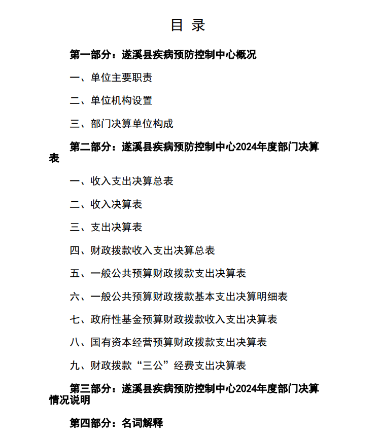 2024年度遂溪縣疾病預(yù)防控制中心部門決算 | | 作者: | 來源:遂溪縣疾病預(yù)防控制中心 | 時間:2025-09-16 15:29:27 點擊數(shù):- 2024年度遂溪縣疾病預(yù)防控制中心部門決算.pdf 【打印正文】