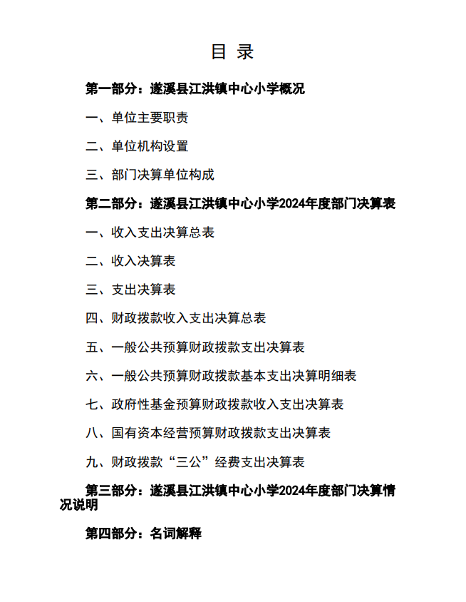 2024年度遂溪縣江洪鎮(zhèn)中心小學(xué)部門決算 | | 作者: | 來源:遂溪縣教育局 | 時(shí)間:2025-09-17 16:25:14 點(diǎn)擊數(shù):- 2024年度遂溪縣江洪鎮(zhèn)中心小學(xué)部門決算.pdf 【打印正文】