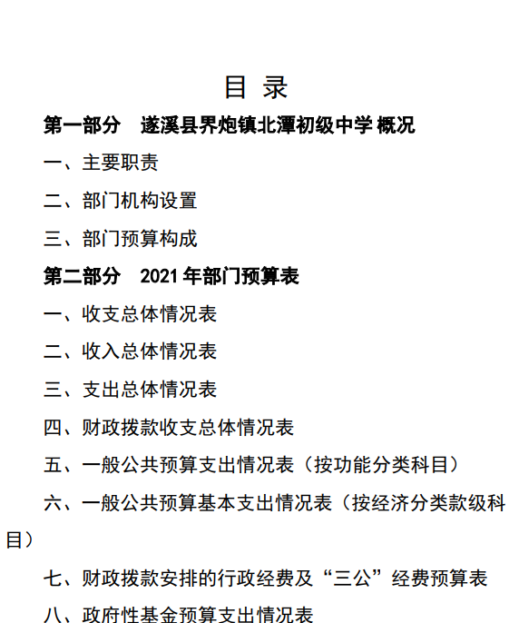 遂溪縣界炮鎮(zhèn)北潭初級中學(xué)2021年部門預(yù)算 | | 作者: | 來源:本網(wǎng) | 時(shí)間:2021-04-08 14:05:59 點(diǎn)擊數(shù):- 詳情請見附件:2021年遂溪縣界炮鎮(zhèn)北潭初級中學(xué)部門預(yù)算.pdf 【打印正文】