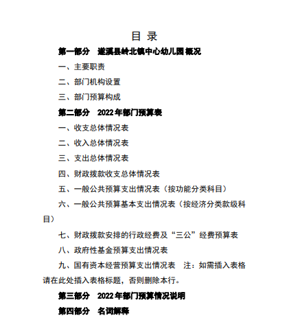 2022年遂溪縣嶺北鎮(zhèn)中心幼兒園部門預算 | | 作者: | 來源:縣財政局 | 時間:2022-05-05 16:21:36 點擊數(shù):- 詳情請見附件:2022年遂溪縣嶺北鎮(zhèn)中心幼兒園部門預算.pdf 【打印正文】