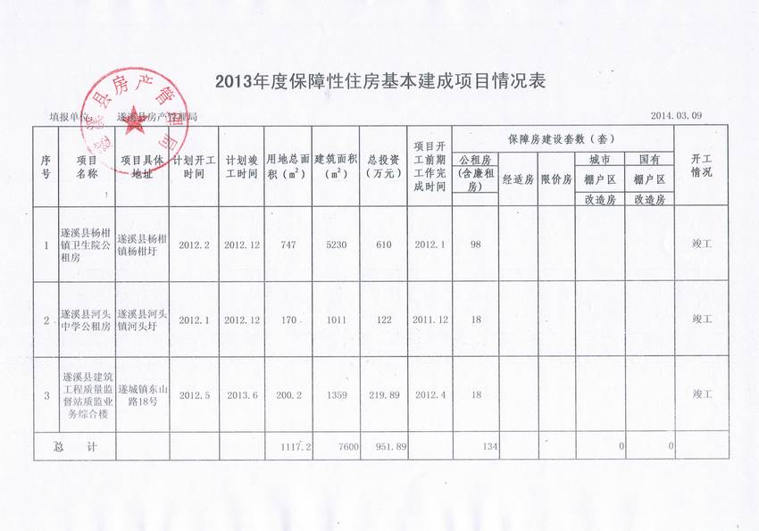 2013年度保障性住房基本建成項(xiàng)目情況表
