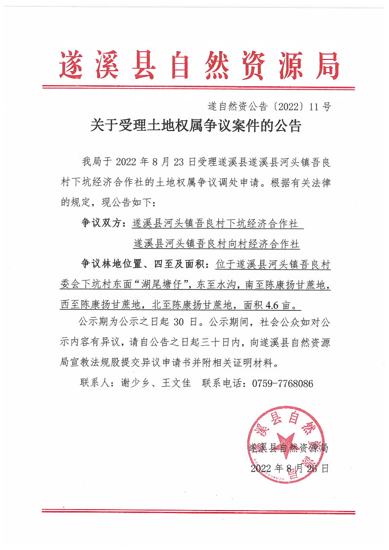關(guān)于受理土地權(quán)屬爭(zhēng)議案件的公告 遂自然資公告﹝2022﹞11號(hào) | | 作者: | 來源:遂溪縣自然資源局 | 時(shí)間:2022-08-26 15:50:45 點(diǎn)擊數(shù):- 【打印正文】