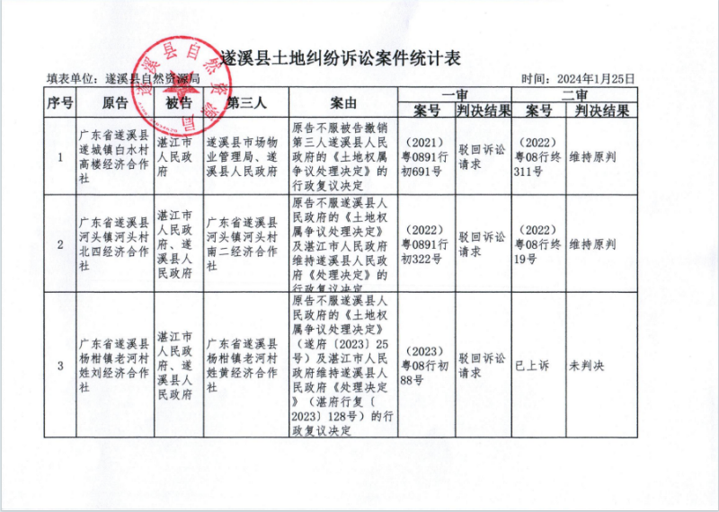遂溪縣土地糾紛訴訟案件統(tǒng)計(jì)表