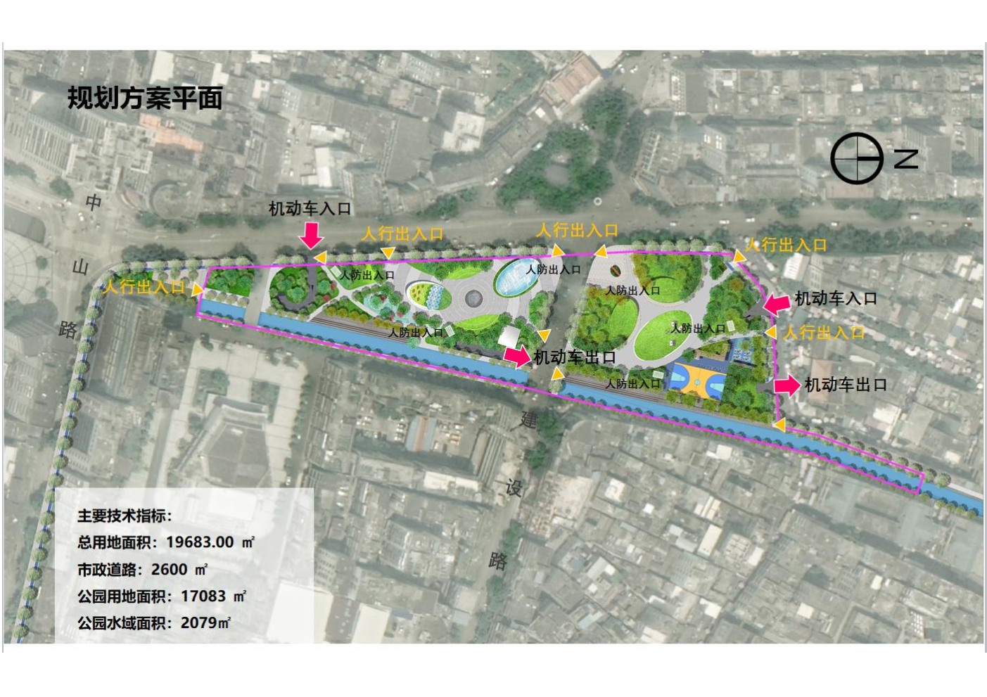 本項(xiàng)目總用地面積19683.00㎡,其中市政道路用地面積2600.00㎡,公園用地面積17083.00㎡。本項(xiàng)目擬建地下三層停車庫(kù),總建筑面積36483.00㎡,其中地上建筑面積1083.00㎡(含衛(wèi)生間100.00㎡、地下車庫(kù)出入口983.00㎡),地下停車庫(kù)面積35400.00㎡(每層建筑面積11800.00㎡, 負(fù)三層含人防工程),共設(shè)臵地下汽車停車位982個(gè)(按30%配臵汽車充電樁295個(gè));建設(shè)室內(nèi)大型廣告牌50個(gè),小型廣告牌150個(gè)。