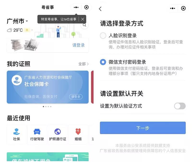 “粵省事”是全國首個依托微信創(chuàng)新推出的集成高頻民生服務(wù)的移動政務(wù)服務(wù)平臺,是一款一鍵解決政務(wù)民生難題的指尖便民“神器”,用戶完成實名認(rèn)證即可全平臺通用,辦理社保繳納、醫(yī)保移動支付、公積金查詢、結(jié)婚登記、一鍵移車等一系列民生服務(wù),目前已覆蓋公安、人社、教育、稅務(wù)等近800項高頻民生服務(wù),其中649項“零跑動”,真正實現(xiàn)政務(wù)服務(wù)個性化、精準(zhǔn)化和“一站式”“指尖”辦理,未來可能還有更多你想不到的功能哦!