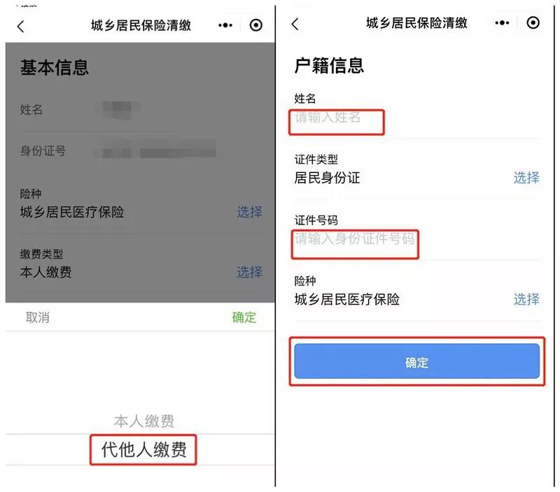 3. 為親朋好友繳費:點擊“城鄉(xiāng)居民社保費清繳”,繳費類型選“代他人繳費”,輸入被代繳人姓名及身份證號碼,點擊“確定”,點擊“繳款”即可。