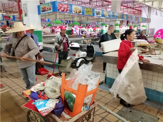 經(jīng)過中午短暫的休息,黨員創(chuàng)文先鋒隊繼續(xù)深入遂城新中心市場開展清潔活動。同志們拿起鏟子、拖把和掃帚,清洗市場內(nèi)地面和案臺的污垢,清除攤位里的垃圾,并勸導(dǎo)商販文明經(jīng)營,幫助經(jīng)營戶搬離違規(guī)占道經(jīng)營物品。一些經(jīng)營戶被黨員志愿者的服務(wù)熱情所感染,也自覺加入到清潔活動中。黨員志愿者不辭辛苦,直到傍晚才結(jié)束清潔。
