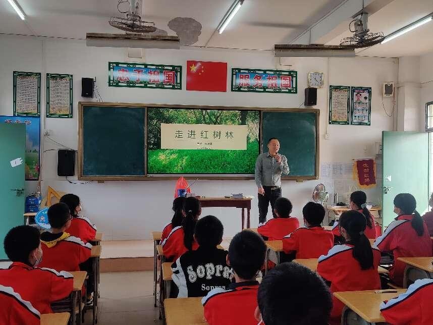 宣講活動中,譚泉玉委員從紅樹林的定義,湛江紅樹林的分布、分布、分類及紅樹林精神等方面,詳細(xì)向?qū)W生們講解了紅樹林的生態(tài)科普知識,傳遞了保護紅樹林、保護濕地生態(tài)系統(tǒng)的理念。隨后學(xué)生們觀看了湛江紅樹林的宣傳視頻,傾聽了湛江紅樹林的宣傳歌曲。