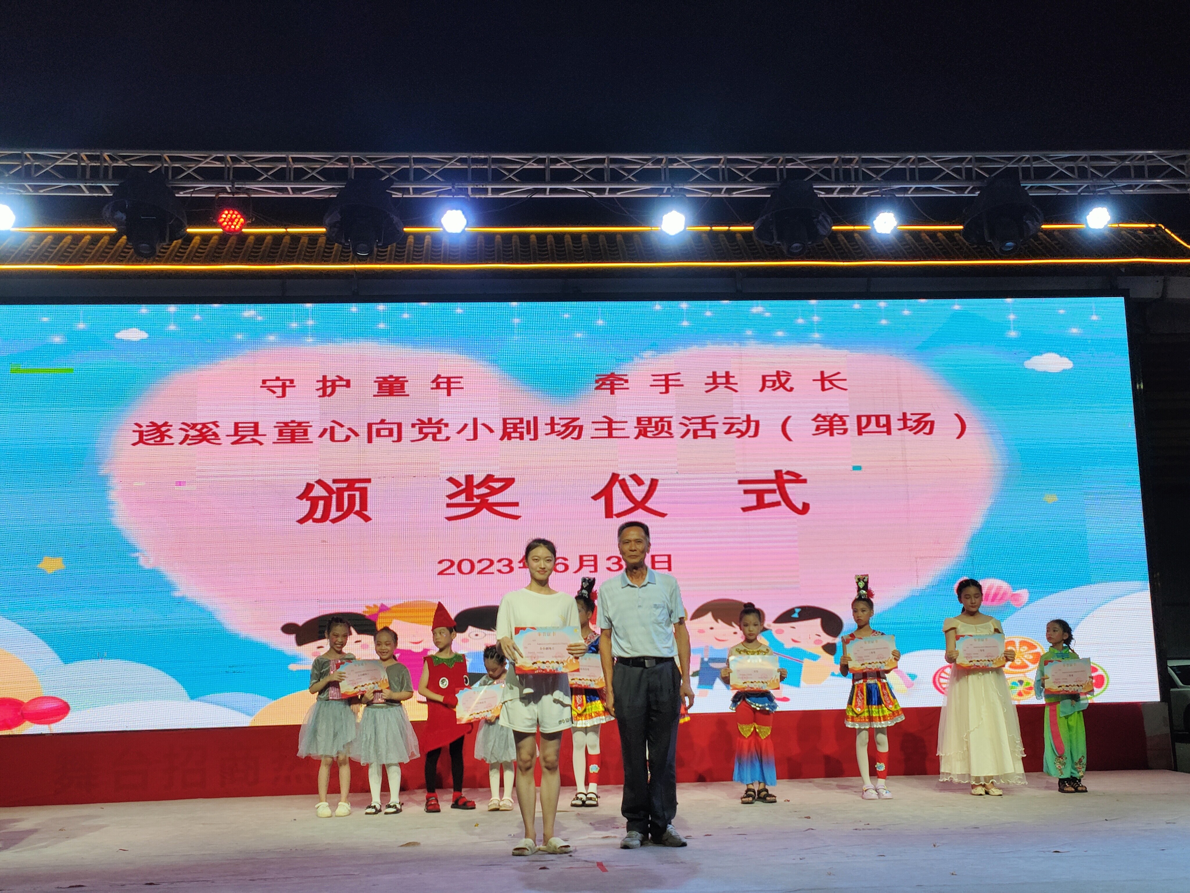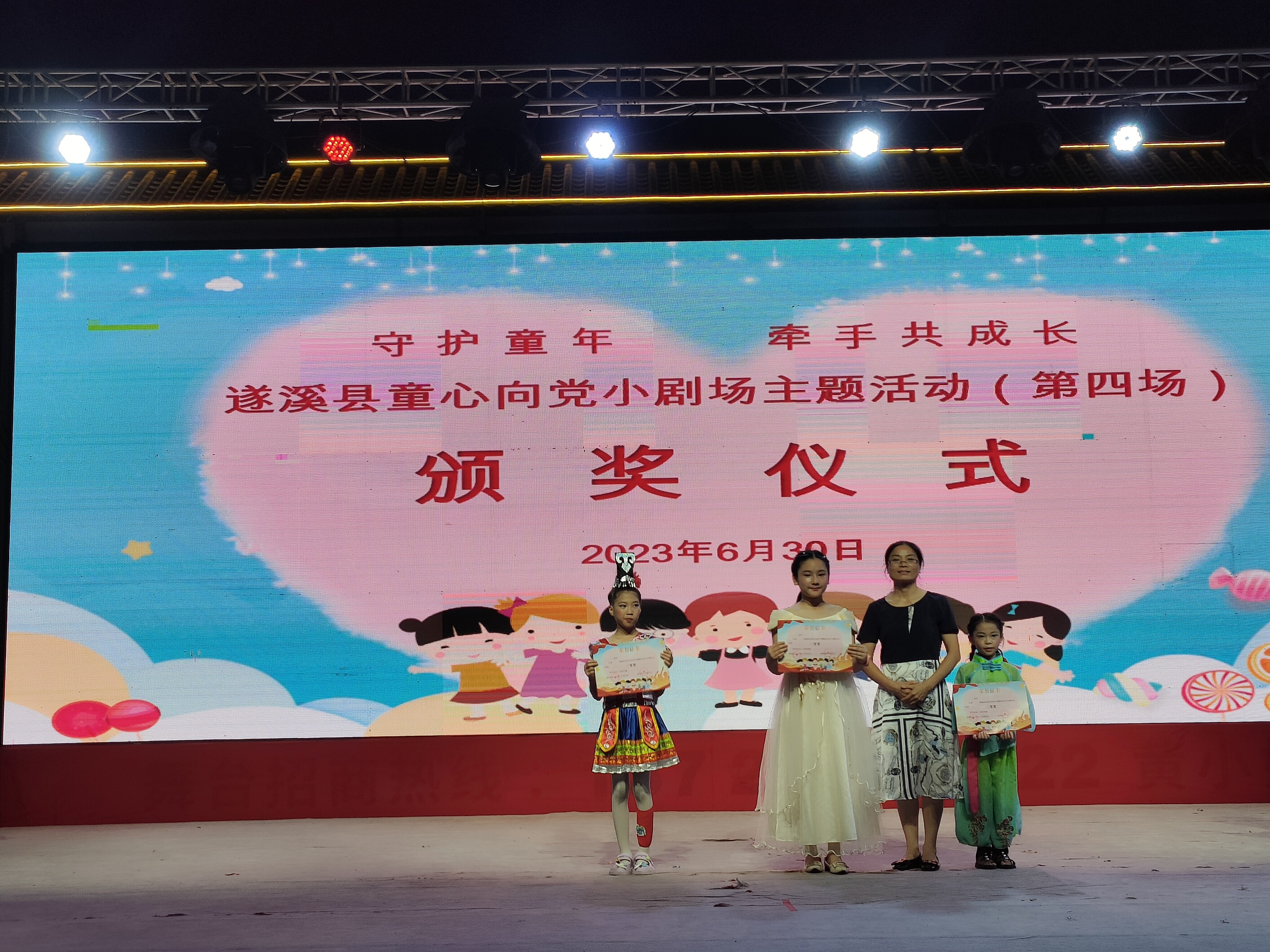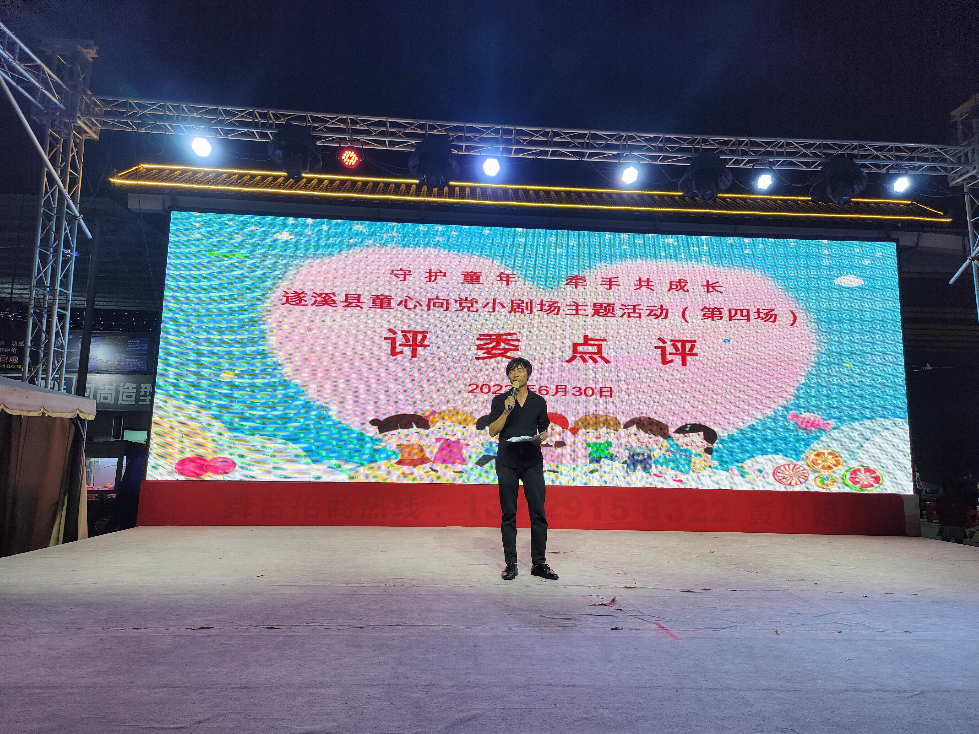 伴隨著綿綿細(xì)雨、歡快的音樂、精彩的演出、歡聲笑語......2023年6月30日晚上,為慶祝中國共產(chǎn)黨成立102周年,弘揚(yáng)革命傳統(tǒng),傳承黨的紅色基因,教育引導(dǎo)廣大少年兒童聽黨話、感黨恩、跟黨走,爭做新時代好少年,遂溪縣童心向黨小劇場第四場活動在遂溪縣醒獅美食廣場內(nèi)開演。