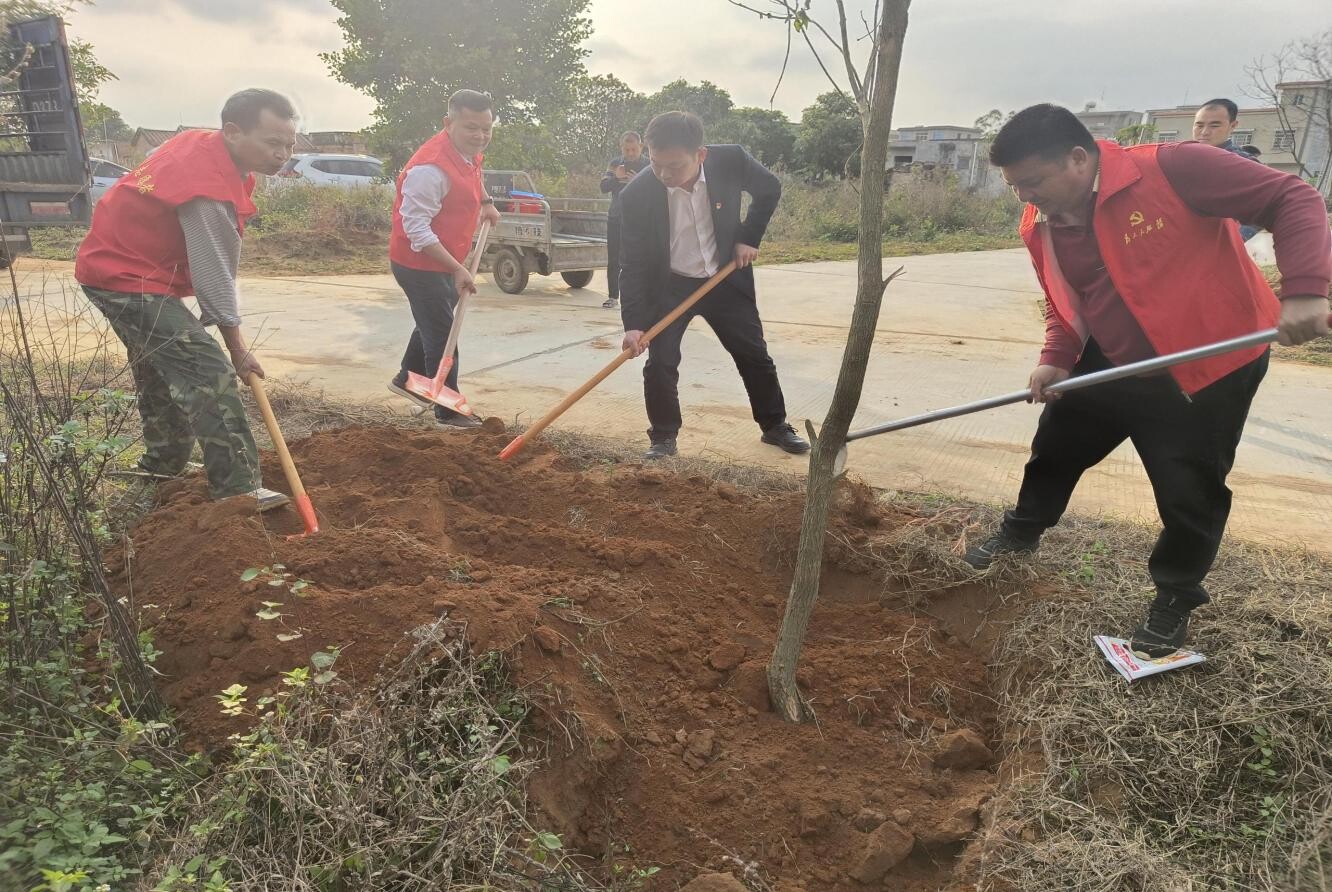 在洋青鎮(zhèn)黨委、政府大力號召下,洋青社會各界,熱心鄉(xiāng)賢紛紛響應(yīng),積極投入到洋青鎮(zhèn)綠化美化工作中來。日前,倆塘村熱心鄉(xiāng)賢卜景術(shù)積極響應(yīng)號召,帶頭籌資6萬元,主動捐贈樹苗300棵助力家鄉(xiāng)綠化美化。為切實加強在鄉(xiāng)村綠化中的組織保障,構(gòu)建鎮(zhèn)黨委牽頭抓總、村黨支部統(tǒng)籌協(xié)調(diào)、村民小組落地落實的綠美鄉(xiāng)村建設(shè)組織體系,2月18日下午,洋青鎮(zhèn)黨委書記陳榮慶、鎮(zhèn)長林智帶領(lǐng)鎮(zhèn)領(lǐng)導(dǎo)干部、倆塘村“兩委”干部、熱心鄉(xiāng)賢、黨員和群眾等40余人到倆塘村委會鋪仔村開展鄉(xiāng)賢助力鄉(xiāng)村綠化活動,以實際行動號召全鎮(zhèn)廣大干部群眾積極參與生態(tài)文明建設(shè),積極動員各方鄉(xiāng)賢力量為建設(shè)美麗家鄉(xiāng)出資出力,共同攜手描繪宜居宜業(yè)宜游、環(huán)境和諧美麗的鄉(xiāng)村新畫卷。