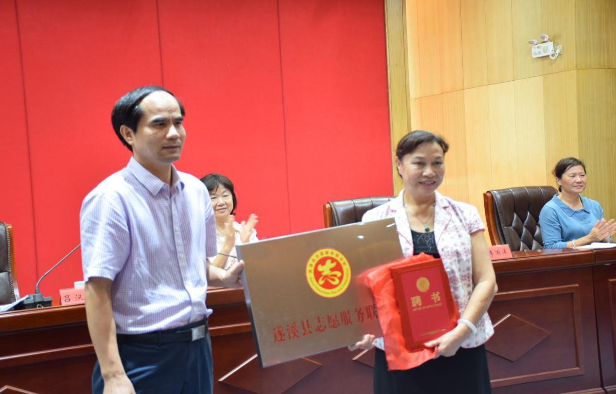 呂漢武常委為遂溪縣志愿者聯(lián)合會授牌,并為新當(dāng)選會長頒發(fā)證書,李國萍為新當(dāng)選的副會長頒發(fā)證書。
