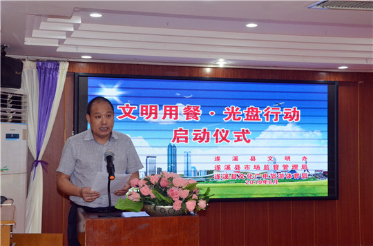 8月23日,縣市場(chǎng)監(jiān)督管理局、縣文明辦、縣文化廣電旅游體育局聯(lián)合舉辦的“文明用餐,光盤行動(dòng)”啟動(dòng)儀式在遂溪銀塔大酒店舉行。縣市場(chǎng)監(jiān)督管理局黨組書(shū)記、局長(zhǎng)陳趙成,縣委宣傳部副部長(zhǎng)林云沖,縣文化廣電旅游體育局副局長(zhǎng)葉偉宏,遂溪銀塔大酒店等縣城28家中型以上餐飲企業(yè)代表參加本次活動(dòng),并現(xiàn)場(chǎng)簽定“文明餐桌行動(dòng)承諾書(shū)”。