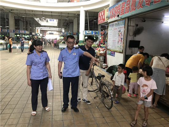 三、迅速推進(jìn)點(diǎn)位建設(shè)工作。按照縣創(chuàng)文辦任務(wù)分工,遂溪縣市場(chǎng)監(jiān)督管理局共承擔(dān)12個(gè)點(diǎn)位創(chuàng)建任務(wù),主要包括2個(gè)農(nóng)貿(mào)(集貿(mào))市場(chǎng)和4個(gè)大型商場(chǎng)超市等。規(guī)范治理遂城新中心市場(chǎng)與遂溪城內(nèi)市場(chǎng),指導(dǎo)市場(chǎng)經(jīng)營(yíng)方對(duì)攤位設(shè)置進(jìn)行規(guī)范整治,嚴(yán)防經(jīng)營(yíng)戶占道經(jīng)營(yíng)現(xiàn)象發(fā)生,確保攤位擺放整齊有序。指導(dǎo)各大型商場(chǎng)、超市守法文明經(jīng)商進(jìn)一步做好創(chuàng)文工作。一是要亮照經(jīng)營(yíng),自覺(jué)增強(qiáng)商鋪創(chuàng)文宣傳氛圍,不堵塞消防通道,設(shè)置禁煙標(biāo)志,勸導(dǎo)及制止吸煙行為,熱情待客。二是要落實(shí)保潔制度。物業(yè)管理公司要落實(shí)環(huán)境保潔,垃圾桶要加蓋,垃圾及時(shí)清運(yùn)。三是要督促員工掛牌上崗,按崗位負(fù)責(zé)制將創(chuàng)文工作落實(shí)到每人。