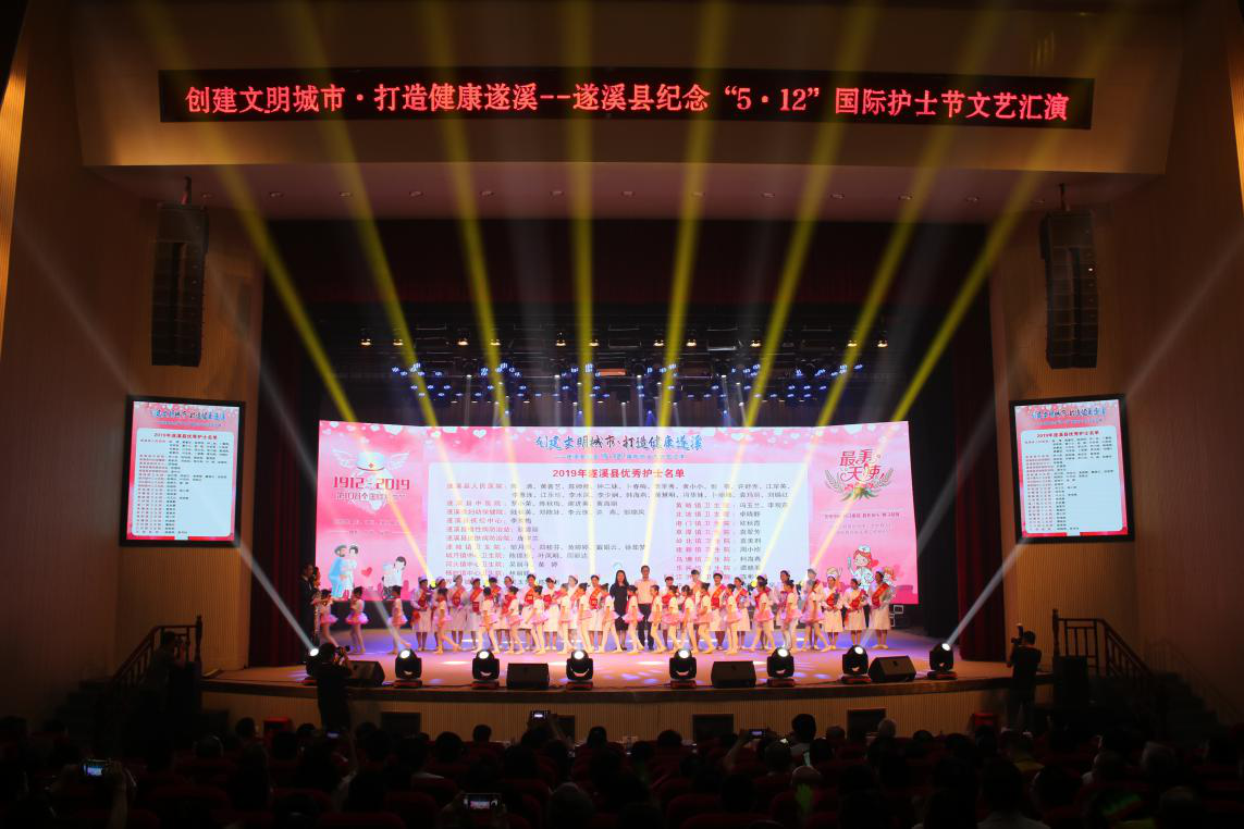 5月10日晚,由縣創(chuàng)文辦、縣衛(wèi)生健康局主辦,以“創(chuàng)建文明城市·打造健康遂溪”為主題的紀(jì)念“5.12”國(guó)際護(hù)士節(jié)文藝匯演在縣影劇院舉行??h人大常委會(huì)副主任黃潔、韓永紅,縣人民政府副縣長(zhǎng)黃小平,縣政協(xié)副主席張卓軍、張閩英等領(lǐng)導(dǎo)及部分原四套班子老領(lǐng)導(dǎo)出席了匯演晚會(huì)。縣直有關(guān)單位領(lǐng)導(dǎo)和衛(wèi)生健康系統(tǒng)干部員工共900多人觀看了匯演。