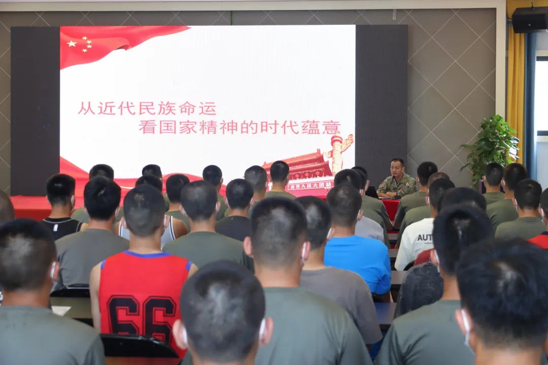在基地大課室上,一場精彩的愛國教育正在進(jìn)行,縣人武部政治委員零子剛正向預(yù)征青年講解《從近代民族命運看國家精神的時代蘊意》。