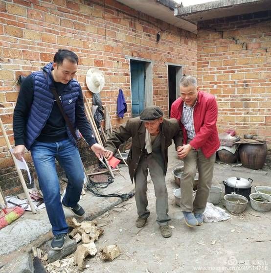 禮部村敬老院的五保戶謝奢(91歲),是鄧校長一對一的幫扶對象,他開心俏皮像個頑童,逗得大家開懷大笑,執(zhí)意要帶大家出門口看他的劈柴技術(shù)。
