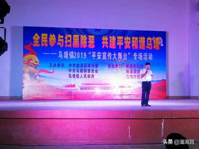 ?????? 4月20日晚,由中共遂溪縣委政法委、烏塘鎮(zhèn)鎮(zhèn)委、烏塘鎮(zhèn)人民政府、烏塘圩村委會(huì)、邊草塘村委會(huì)、米塘村委會(huì)、白水塘村委會(huì)、安貢村委會(huì)、梁村村委會(huì)、龐村村委會(huì)聯(lián)合舉辦,縣團(tuán)委、縣婦聯(lián)等多部門協(xié)辦,以“平安建設(shè)宣傳”為主題的專場(chǎng)晚會(huì),在烏塘鎮(zhèn)文化廣場(chǎng)舉辦。烏塘鎮(zhèn)部分班子成員、村委會(huì)全體干部、社會(huì)各界群眾共1000多人參加。烏塘鎮(zhèn)黨委副書記、政法書記周澤做活動(dòng)致辭。