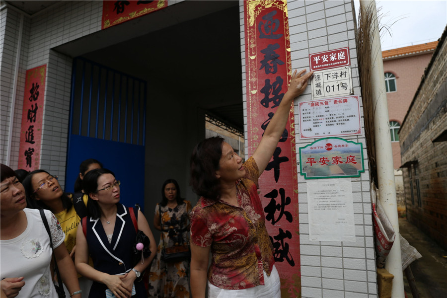 ? ? ? ? ? ? ??與會(huì)人員參觀了遂城鎮(zhèn)下洋村學(xué)習(xí)“平安家庭”創(chuàng)建工作,聽取了豆村婦聯(lián)主席范納關(guān)于評(píng)選“平安家庭”、“最美家庭”的做法,參觀了李興龍、黎娟“美麗庭院”、李華堅(jiān)、陳娟“最美家庭”、空姐電商服務(wù)點(diǎn),觀看“姐妹攜手 齊心協(xié)力 創(chuàng)建美麗家園”展版。