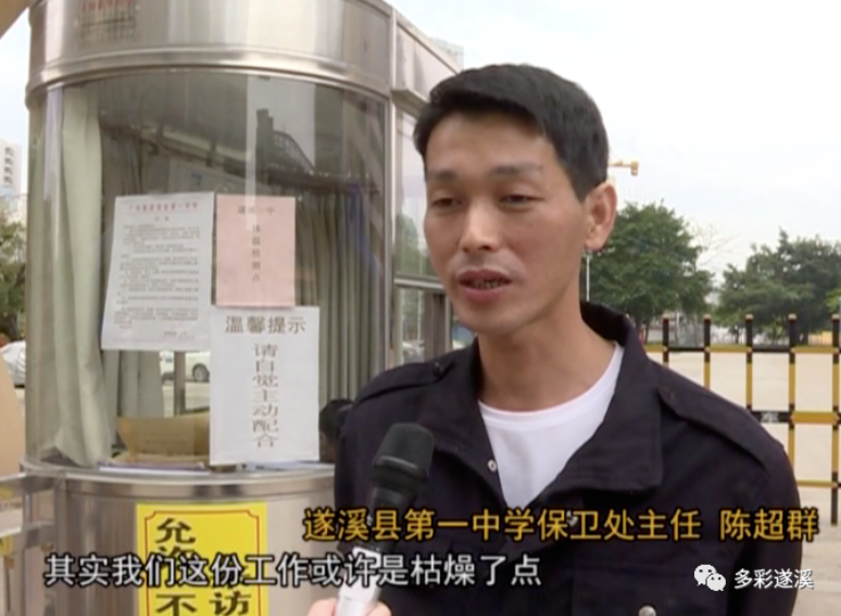 遂溪縣第一中學(xué)保衛(wèi)處主任 陳超群:其實我們這份工作或許是枯燥了點,但是也很有意義,我們的保安員每天都會對學(xué)校各個區(qū)域,教學(xué)區(qū)、生活區(qū)、夜路區(qū)等方面進行巡邏,目的就是要保證我們的學(xué)生在這里學(xué)習(xí)學(xué)的開開心心,高高興興的來學(xué)校,平平安安的回家去。