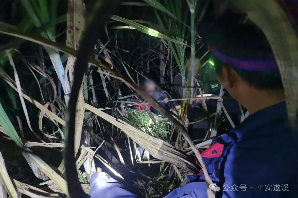 經(jīng)驗(yàn)老道的民警敏銳察覺到,老人可能在甘蔗地,于是組織搜尋人員對村周圍的甘蔗地進(jìn)行拉網(wǎng)式搜尋。功夫不負(fù)有心人,23時50分,搜尋人員成功在甘蔗地一處尋到封某兆。