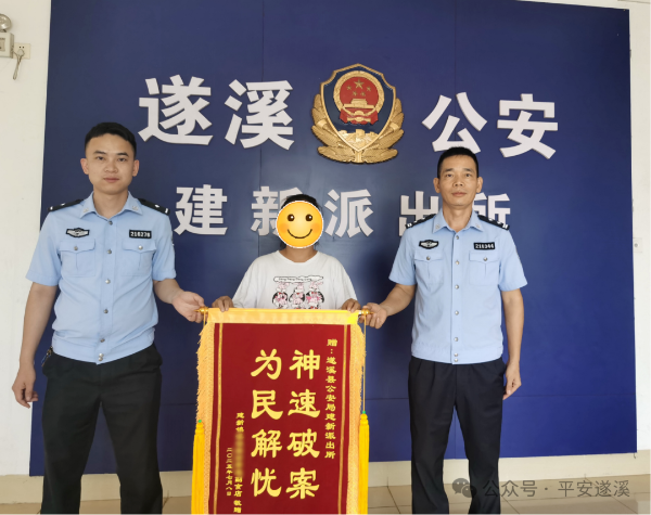 7月9日,戚女士將一面“神速破案 為民解憂”的錦旗送至建新派出所,感謝民警快速破案,為其追回被盜財(cái)物。