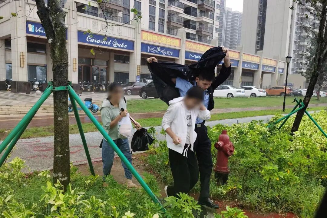 當(dāng)日15時30分,遂城街道兩名群眾駕駛電動車回家途中,遇到暴風(fēng)雨受阻后報警求助。城西派出所接報后,值班民警頂著狂風(fēng)暴雨將兩名群眾安全送回家。