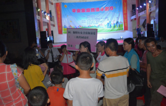 現(xiàn)場表演主要通過講述由夫妻關(guān)系、婆媳關(guān)系處理不當(dāng),男女平等意識薄弱等引發(fā)的極端家暴行為社會現(xiàn)象,在鄰里幫助下學(xué)會運用法律保護自身,家庭矛盾最終得以解決,故事情節(jié)發(fā)展扣人心懸,演員們表演深入到位,進(jìn)一步普及預(yù)防家庭暴力犯罪、未成年人加強自我保護等相關(guān)知識,活動現(xiàn)場有包括婦女、少年兒童等500多人參加?;顒舆^程設(shè)置有知識搶答環(huán)節(jié)等互動環(huán)節(jié),主持人通過提問有關(guān)反家庭暴力法、禁毒等方面基礎(chǔ)知識,現(xiàn)場觀眾通過舉手搶答方式來爭取贏得獎品,活動現(xiàn)場氛圍活躍、群眾積極性高,較好地達(dá)到反家庭暴力普法宣傳、預(yù)防和保護未成年人等相關(guān)知識學(xué)習(xí)的宣傳效果。