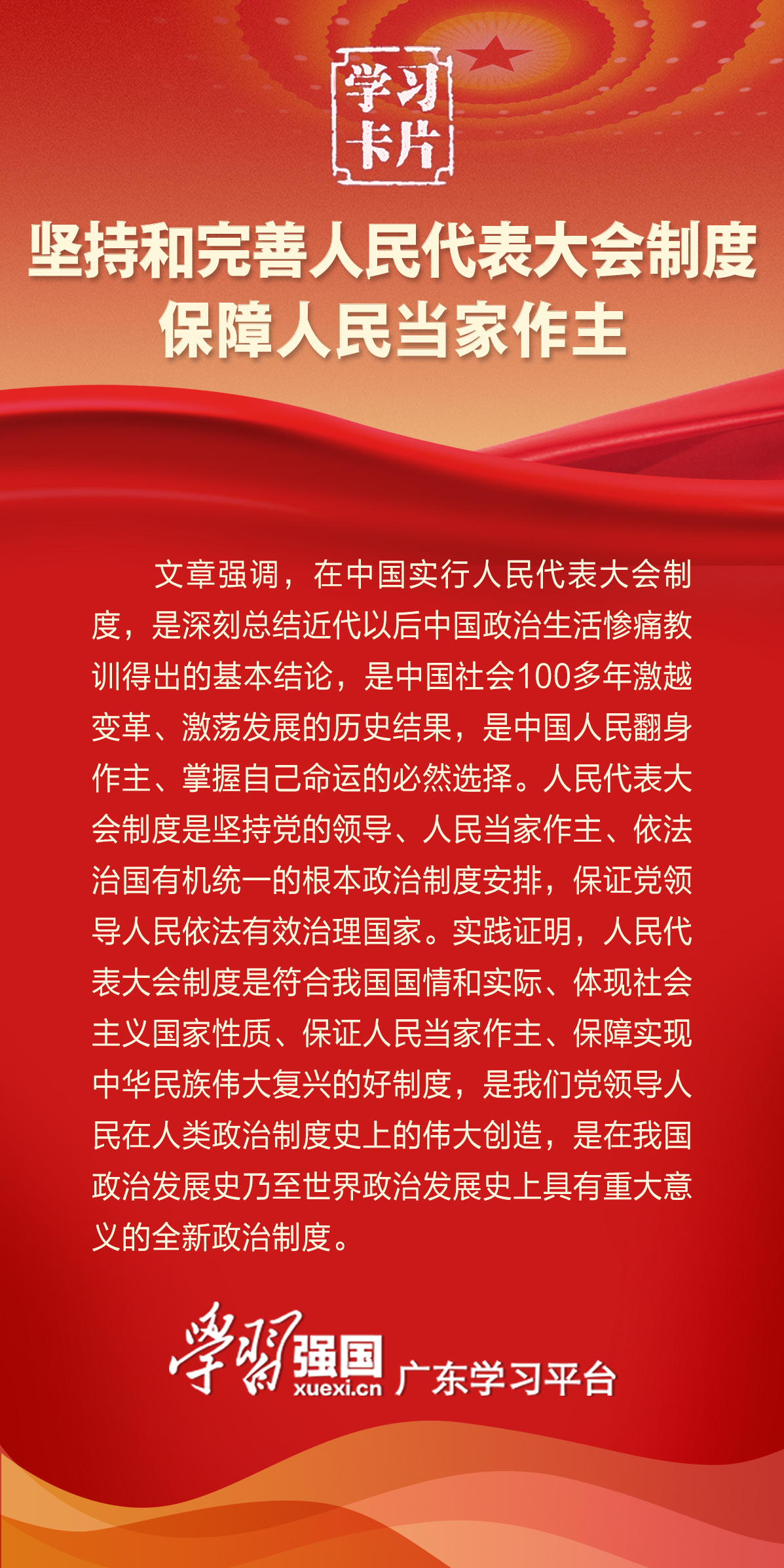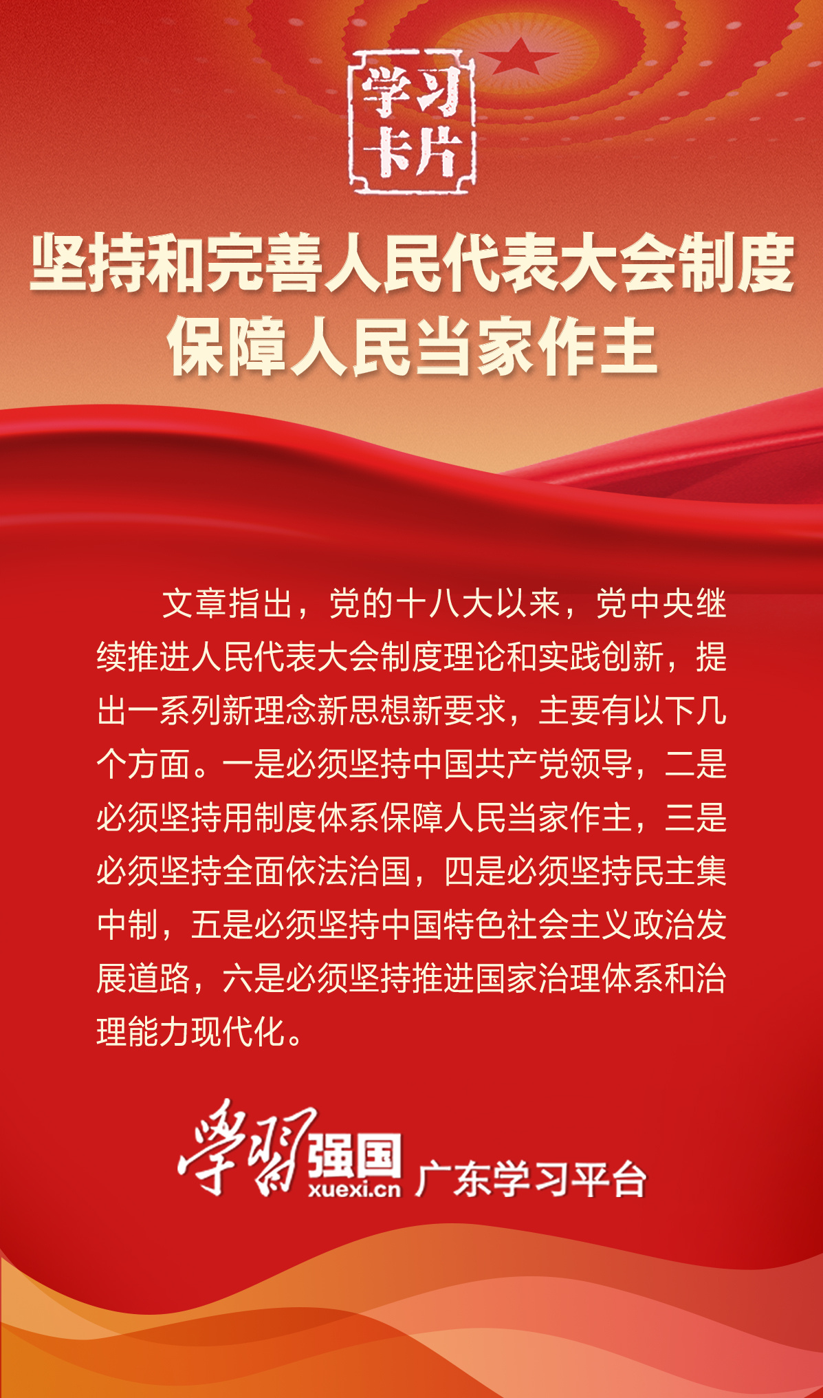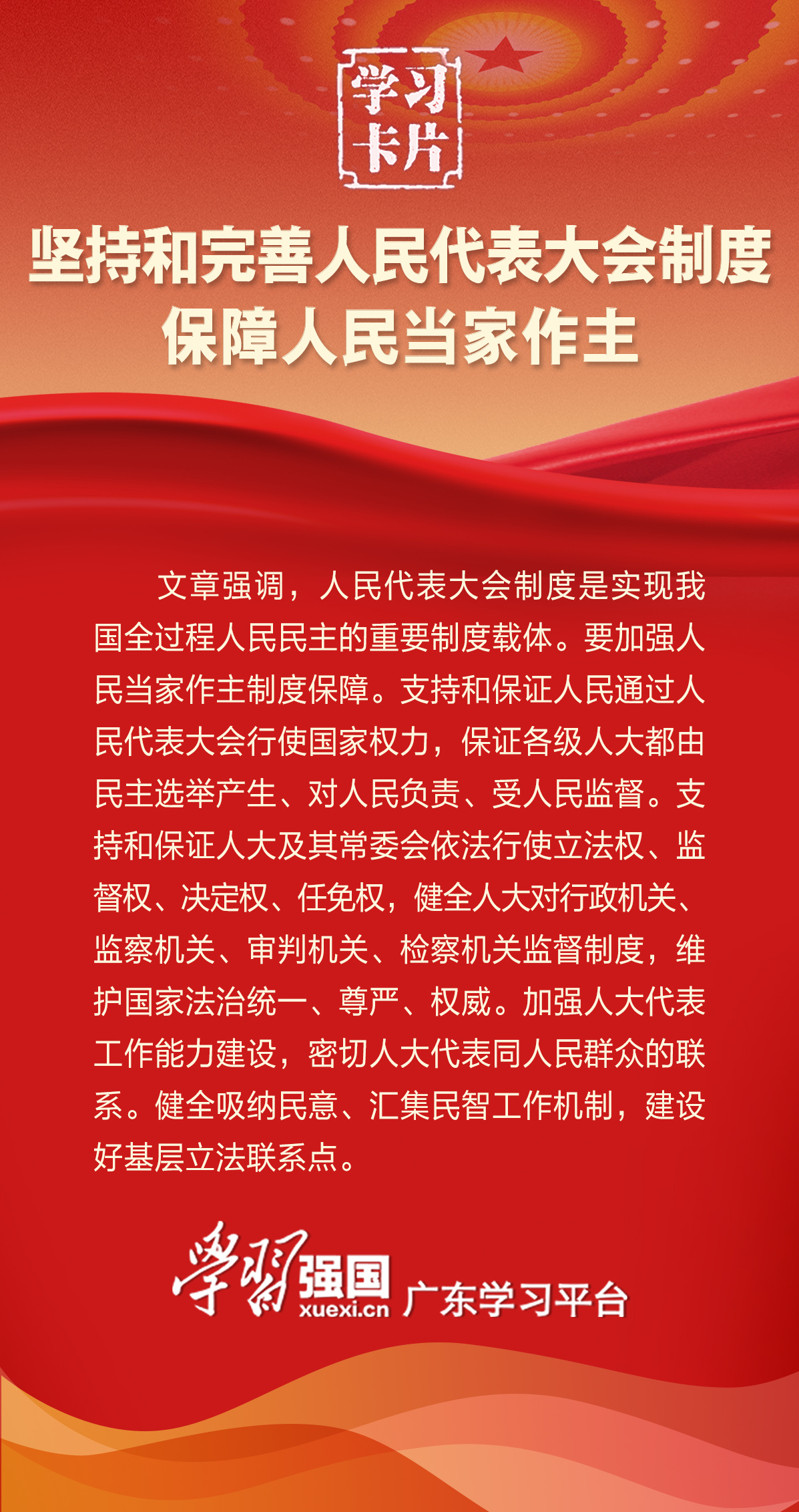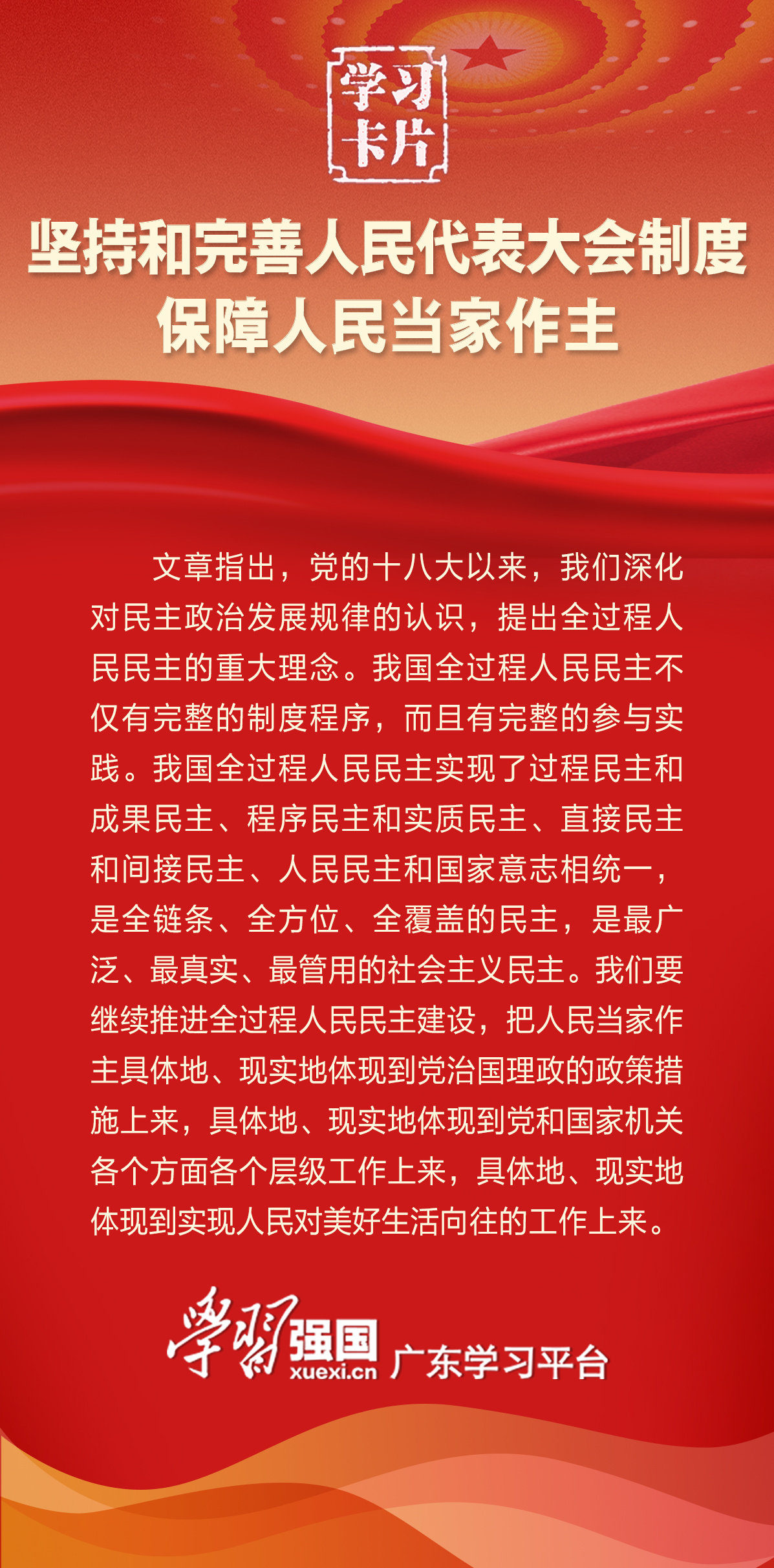 學(xué)習(xí)卡片|堅(jiān)持和完善人民代表大會(huì)制度 保障人民當(dāng)家作主 | | 作者:遂溪縣行政服務(wù)中心 | 來(lái)源:學(xué)習(xí)強(qiáng)國(guó) | 時(shí)間:2024-02-23 09:18:59 點(diǎn)擊數(shù):- 【打印正文】