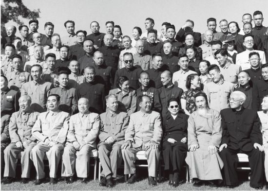 中華人民共和國第一屆全國人民代表大會(huì)第一次會(huì)議全體代表于1954年9月21日合影。 毛澤東主席和代表們在一起。前排左起:董必武、周恩來、李濟(jì)深、劉少奇、毛澤東、宋慶齡、張瀾、林伯渠。 新華社稿 侯波/攝