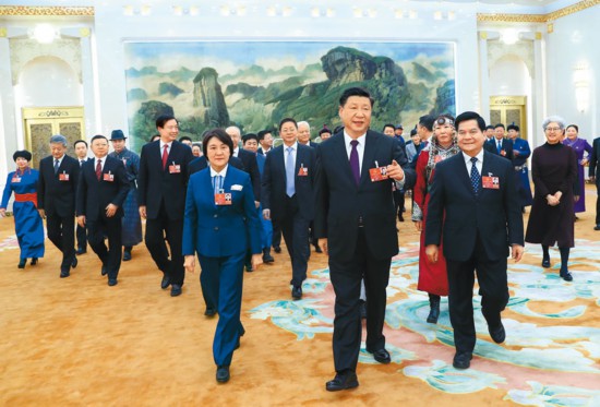 2018年3月5日,中共中央總書記、國家主席、中央軍委主席習(xí)近平參加十三屆全國人大一次會(huì)議內(nèi)蒙古代表團(tuán)的審議。 新華社記者 謝環(huán)馳/攝