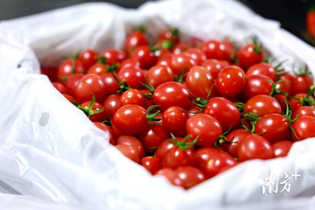 1月3日,廣東(遂溪)界炮圣女果“百城萬店”行動啟動會上,現(xiàn)場簽約銷售量高達1800萬斤,預(yù)計占全年總產(chǎn)量的五分之一,北緯21°“小糖彈”一炮而紅。今天,新一季的界炮圣女果,從粵西小鎮(zhèn)走向粵港澳大灣區(qū),踏入大型商超,走進灣區(qū)大眾的果盤子里。
