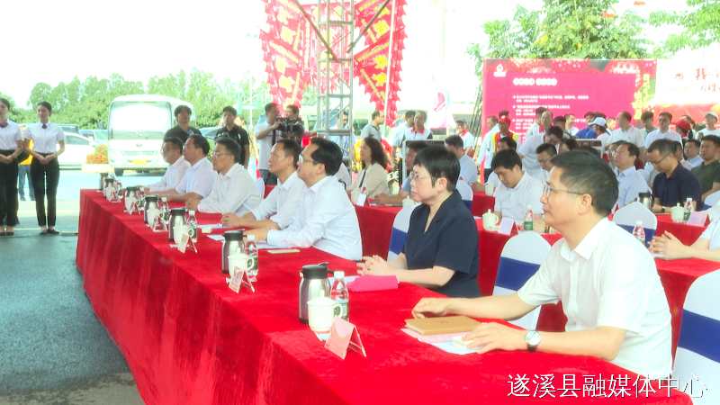 參加活動(dòng)的領(lǐng)導(dǎo)上臺(tái)推桿啟動(dòng)2025廣東遂溪(烏塘)仙品荔開(kāi)采活動(dòng)暨“百千萬(wàn)工程”文旅周。