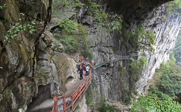 旅游企業(yè)代表體驗(yàn)石門仙湖玻璃棧道