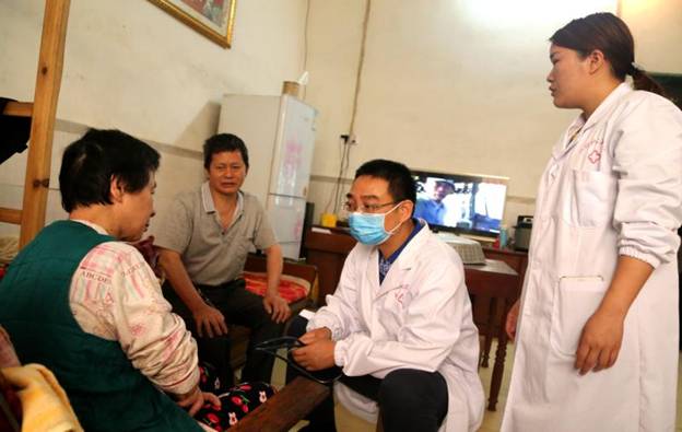 醫(yī)療專家上門為行動不便的貧困戶診療送藥