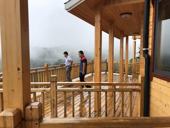 考察組考察三江仙人山景區(qū)星空木屋民宿