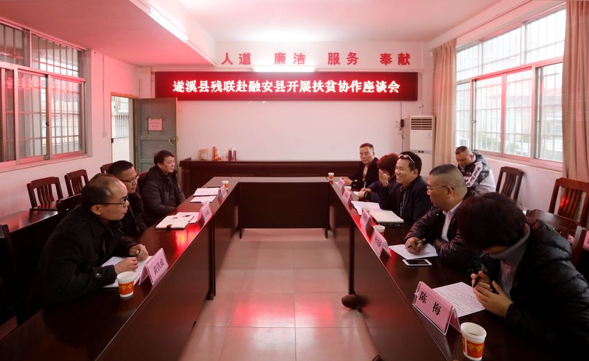 根據(jù)廣東省殘聯(lián)與廣西壯族自治區(qū)殘聯(lián)簽訂的幫扶協(xié)議內(nèi)容,3月1日遂溪縣殘聯(lián)理事長(zhǎng)陳觀榮帶隊(duì)來(lái)到融安縣,與融安縣殘聯(lián)商討2019年粵桂(遂溪-融安)扶貧協(xié)作殘聯(lián)幫扶相關(guān)工作。