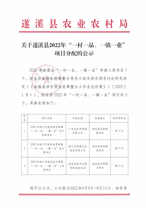 關(guān)于遂溪縣2022年“一村一品、一鎮(zhèn)一業(yè)”項(xiàng)目分配的公示 | | 作者: | 來(lái)源:本網(wǎng) | 時(shí)間:2022-06-08 15:29:35 點(diǎn)擊數(shù):- 【打印正文】