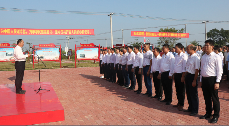 ??? 10月17日上午,為深入貫徹落實(shí)黨的十九大精神及習(xí)近平新時(shí)代中國(guó)特色社會(huì)主義思想,進(jìn)一步推進(jìn)“不忘初心、牢記使命”主題教育,北坡鎮(zhèn)在上塘村黨建主題公園舉行“不忘初心、牢記使命”主題教育重溫入黨誓詞、學(xué)習(xí)光輝黨史主題黨日活動(dòng),縣委主題教育第五指導(dǎo)組全體成員,鎮(zhèn)領(lǐng)導(dǎo)班子成員,鎮(zhèn)政府、各村(社區(qū))、機(jī)關(guān)企事業(yè)單位、“兩新”組織黨組織黨員、預(yù)備黨員、入黨積極分子,駐村幫扶工作隊(duì)以及“十百千”干部約1000人參加,鎮(zhèn)委副書記、鎮(zhèn)長(zhǎng)譚彤煜主持,鎮(zhèn)委書記陳光提出席活動(dòng)并講話。