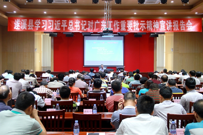 宣講會上,李炎圍繞習(xí)近平總書記對廣東工作重要批示的重要意義、深刻內(nèi)涵和精神實(shí)質(zhì),從把握“四個堅(jiān)持”,堅(jiān)定新時期旗幟;落實(shí)“三個支撐”,掌握新時期重點(diǎn);決勝“兩個走在前列“,實(shí)現(xiàn)新時期奮斗目標(biāo)等方面作了全面系統(tǒng)解讀,為與會人員作了一場非常精彩的輔導(dǎo)報(bào)告。他強(qiáng)調(diào),要深刻領(lǐng)會習(xí)近平總書記重要批示精神,以“四個堅(jiān)持、三個支撐、兩個走在列”統(tǒng)領(lǐng)工作全局,謀劃和布局未來發(fā)展,在新的歷史起點(diǎn)上努力推動遂溪實(shí)現(xiàn)新的更大的發(fā)展。李炎的專題輔導(dǎo)報(bào)告,視野開闊,內(nèi)容豐富,闡述透徹,為我縣廣大黨員干部深入學(xué)習(xí)領(lǐng)會、全面準(zhǔn)確把握重要批示精神提供了很好的輔導(dǎo)。
