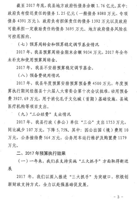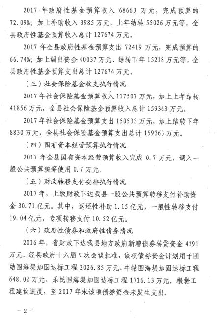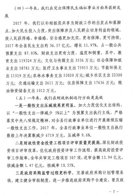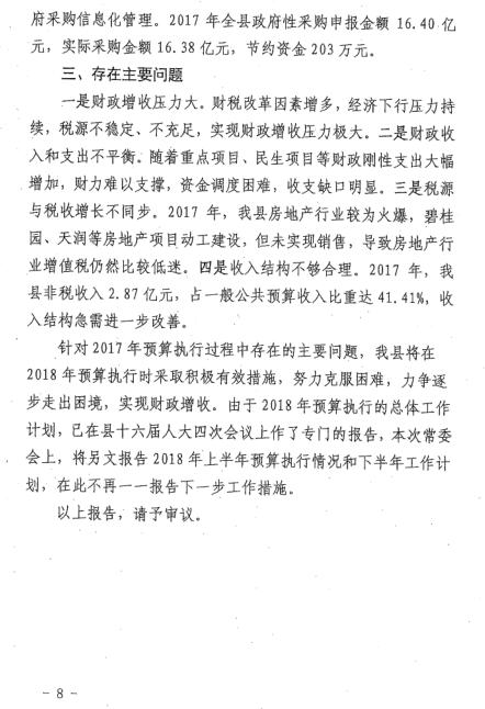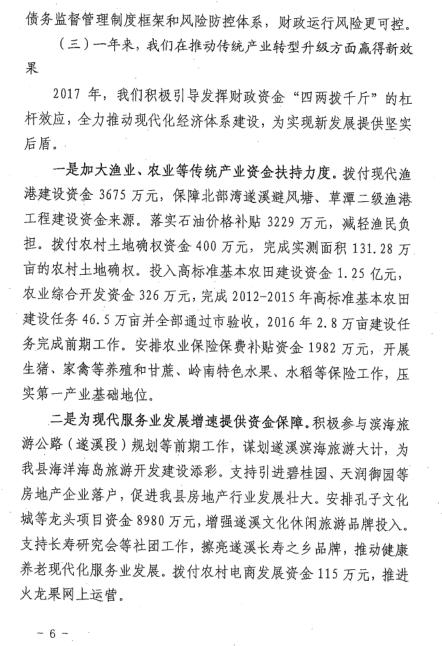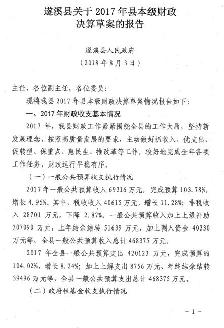 遂溪縣關(guān)于2017年縣本級財政決算草案的報告