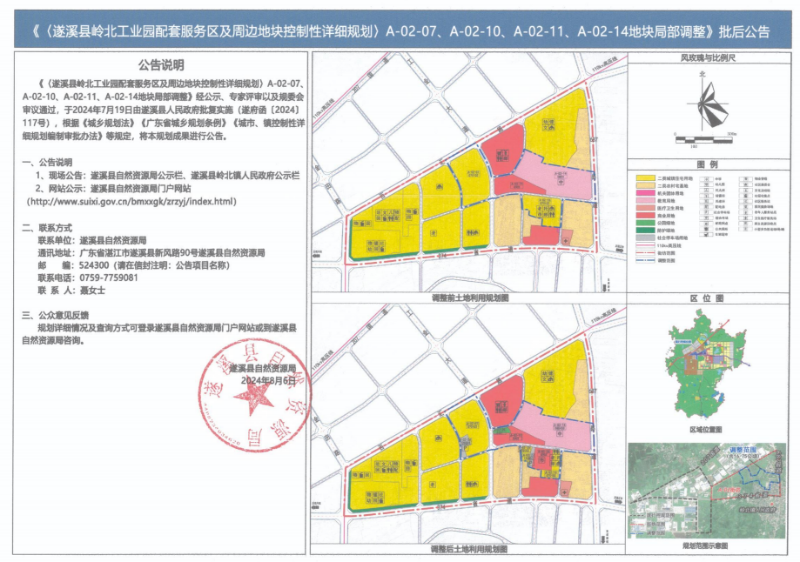 《遂溪縣嶺北工業(yè)園配套服務區(qū)及周邊地塊控制性詳細規(guī)劃A-02-07、A-02-10、A-02-11、A-02-14地塊局部調(diào)整》批后公告 | | 作者: | 來源:遂溪縣自然資源局 | 時間:2024-08-06 15:52:07 點擊數(shù):- 【打印正文】