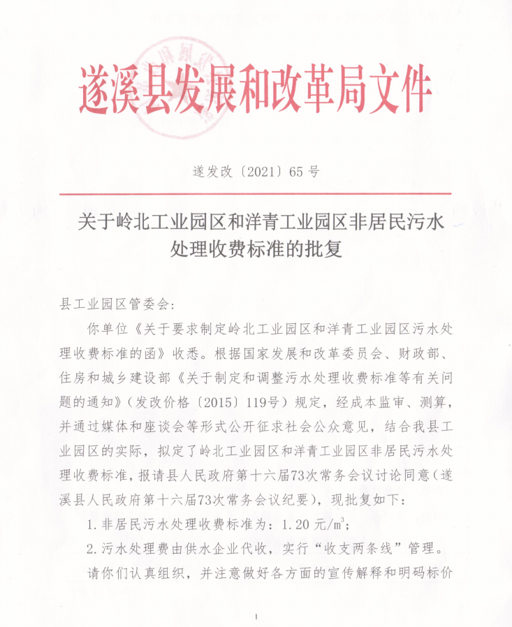 關(guān)于嶺北工業(yè)園區(qū)和洋青業(yè)園區(qū)非居民污水處理收費標(biāo)準(zhǔn)的批復(fù) | | 作者: | 來源:遂溪縣發(fā)展和改革局 | 時間:2021-06-03 10:56:33 點擊數(shù):- 政策解讀:遂溪縣發(fā)展和改革局關(guān)于嶺北工業(yè)園區(qū)和洋青業(yè)園區(qū)非居民污水處理收費標(biāo)準(zhǔn)的政策解讀 【打印正文】