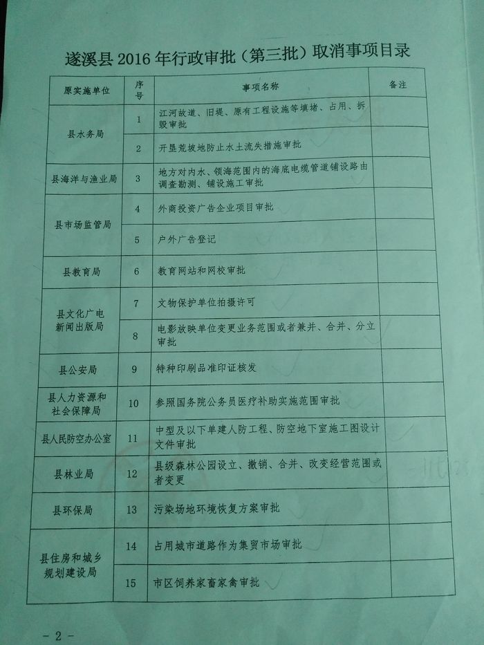 遂溪縣人民政府關(guān)于印發(fā)遂溪縣2016年行政審批(批三批)取消事項(xiàng)目錄的通知 | | 作者:縣編辦 | 來源:縣編辦 | 時(shí)間:2017-10-12 15:29:48 點(diǎn)擊數(shù):- 【打印正文】