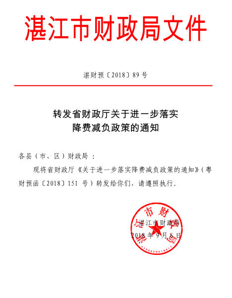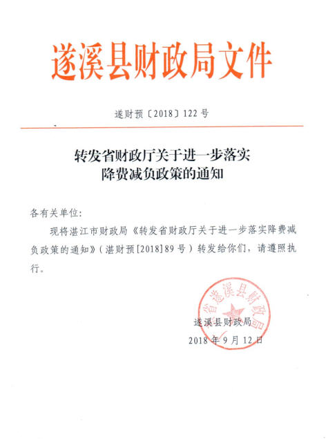 遂財預122號轉發(fā)省財政廳關于進一步落實降費減負政策的通知