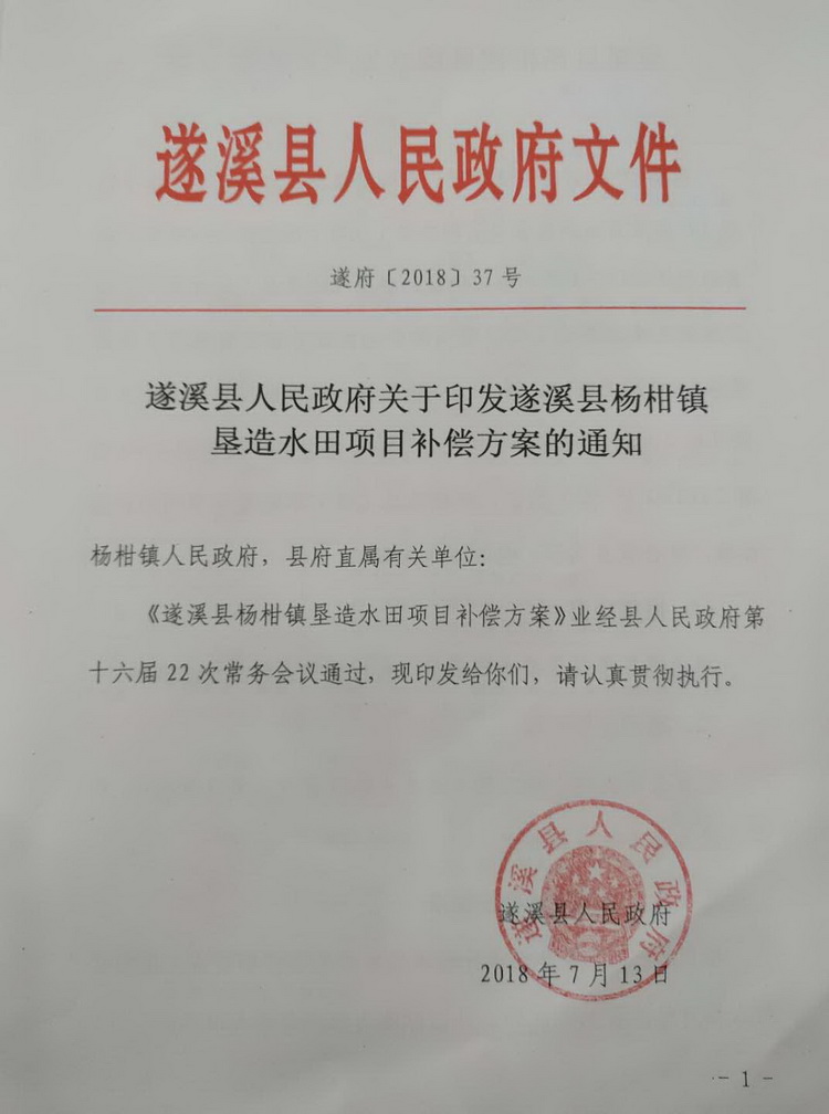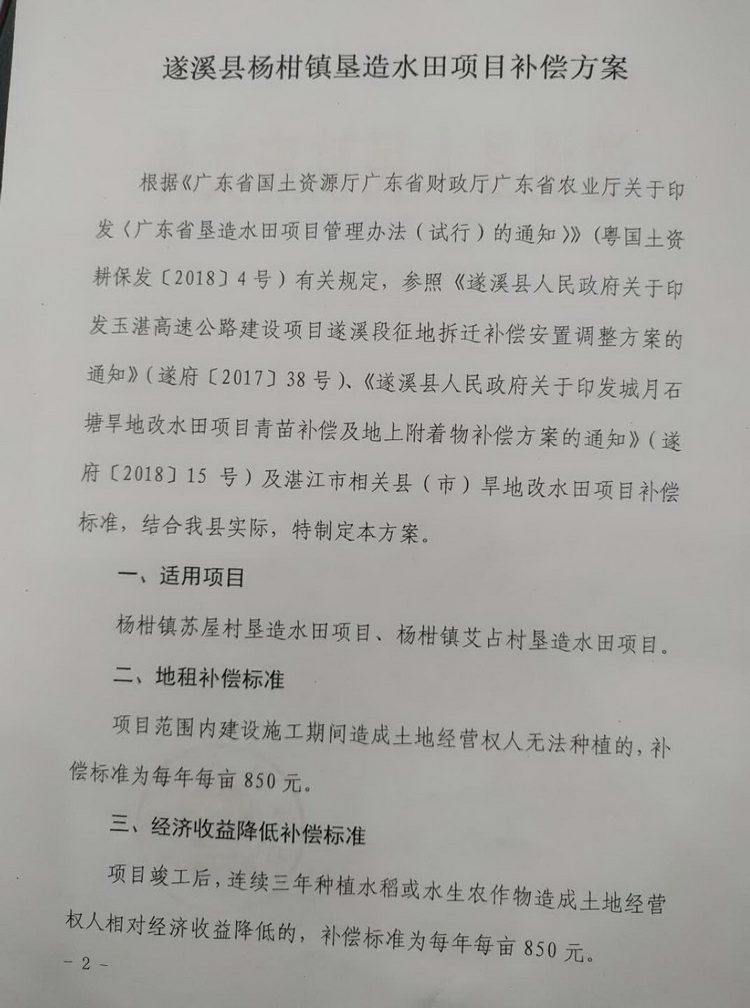 遂溪縣人民政府關(guān)于印發(fā)遂溪縣楊柑鎮(zhèn)墾造水田項(xiàng)目補(bǔ)償方案的通知 | | 作者:縣人民政府 | 來源:縣人民政府 | 時(shí)間:2018-07-14 10:21:59 點(diǎn)擊數(shù):- 【打印正文】