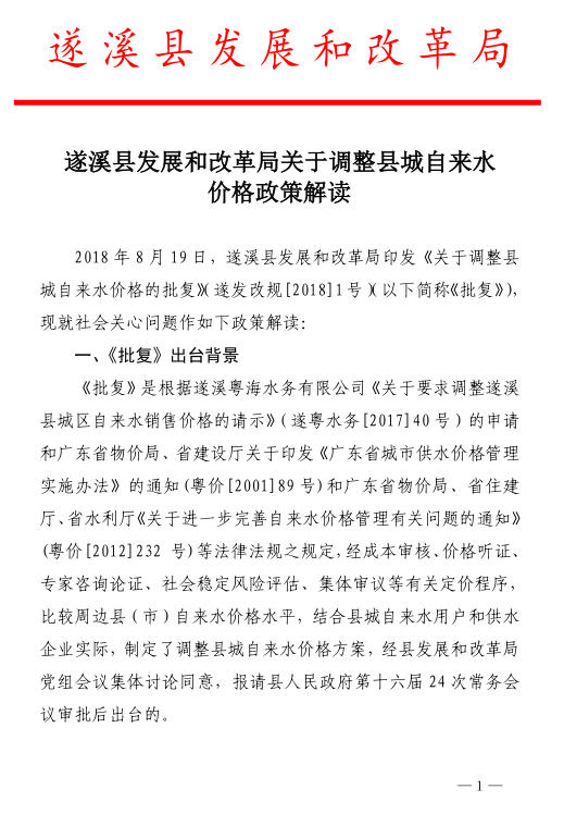 遂溪縣發(fā)展改革局關(guān)于調(diào)整縣城自來水價(jià)格政策解讀 | | 作者:縣發(fā)改局 | 來源:縣發(fā)改局 | 時(shí)間:2018-09-26 09:45:47 點(diǎn)擊數(shù):- 【打印正文】