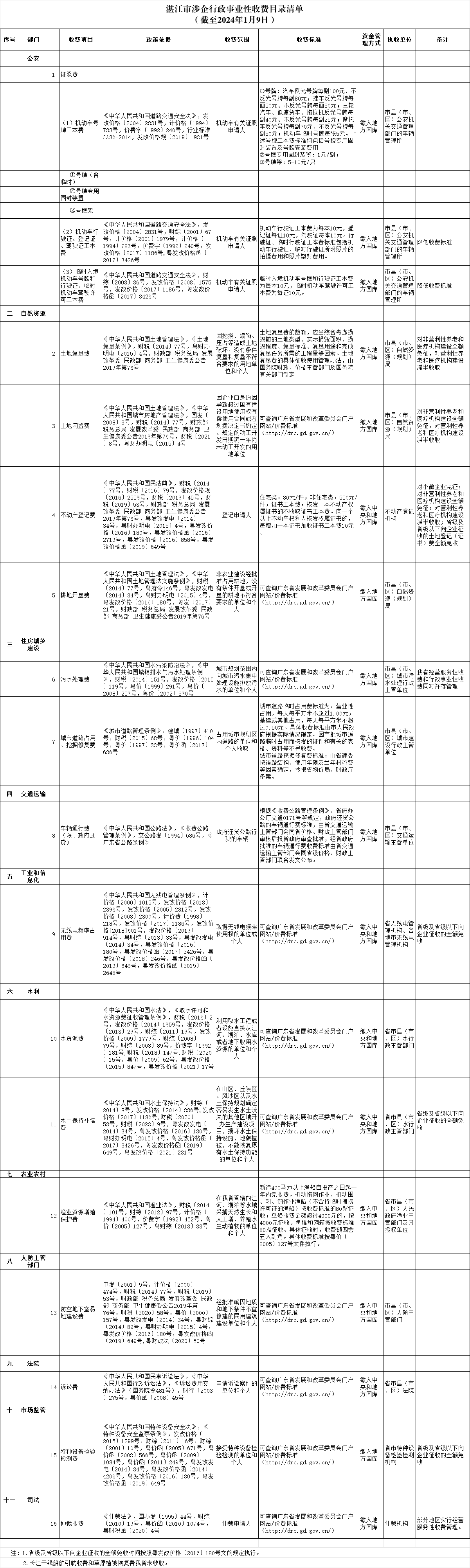 湛江市涉企行政事業(yè)性收費目錄清單(截至2024年1月9日)
