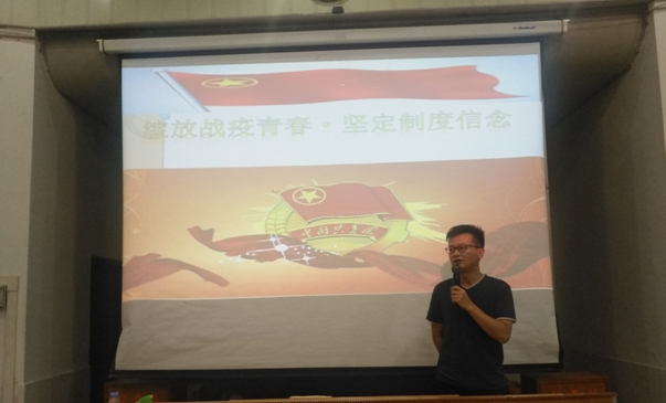 為深入學習宣傳貫徹習近平總書記關于疫情防控工作的系列重要講話精神,講好中國抗疫故事,發(fā)出青年好聲音,傳播青春正能量,激勵和引領青少年進一步堅定制度自信,強化青年擔當,遂溪一中團委于5月24日晚上9點在校友樓階梯教室開展“綻放戰(zhàn)疫青春?堅定制度自信”主題宣傳教育活動。遂溪一中團委書記潘飛宇、全體團委委員、高一級團支書參加了本次活動,活動由遂溪一中團委組織部委員王建宏同學主持。