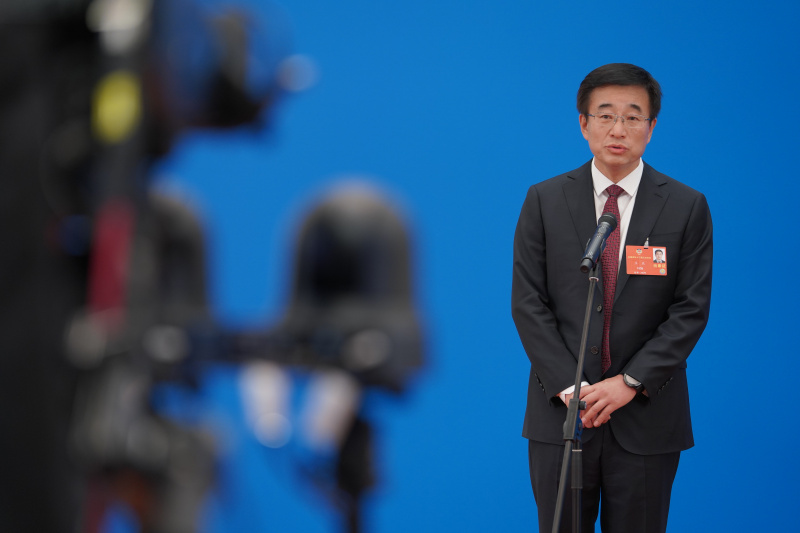 5月21日,在北京人民大會堂新聞發(fā)布廳舉行的全國政協(xié)十三屆三次會議第一場“委員通道”采訪活動上,全國政協(xié)委員王辰通過網(wǎng)絡(luò)視頻方式接受媒體采訪。新華社記者 劉金海 攝